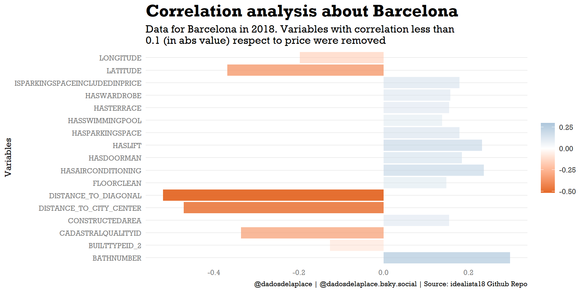 subtitle = "Data for Barcelona in 2018. Variables with correlation less than\n0.1 (in abs value) respect to price were removed",