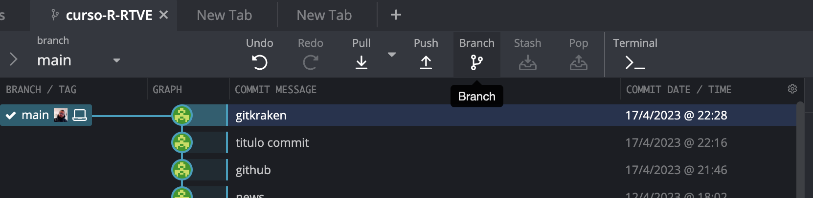 Fíjate que ahora tenemos el ordenador y el logo en el mismo sitio. Esto no significa que tengas ambas ramas en tu local, solo que Gitkraken tiene ambas sincronizadas: clickando en cualquiera de ellas, tus archivos en tu ordenador cambiarán.