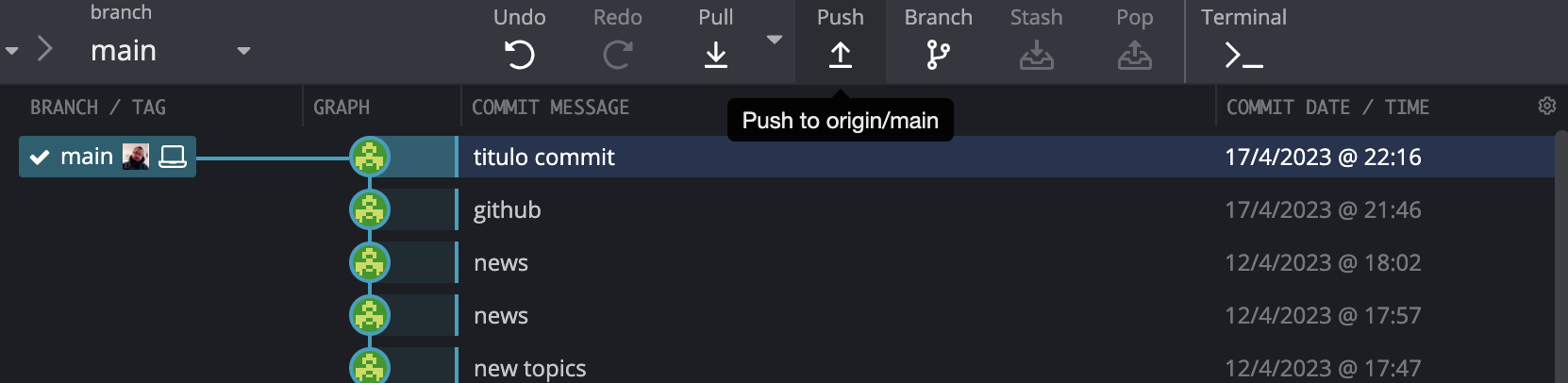 Mientras eso suceda solo tendrás sincronizado tu ordenador con Gitkraken, pero no con Github. Para ello haremos click en Push (con Pull podrás forzar a tener en local lo mismo que en remoto).