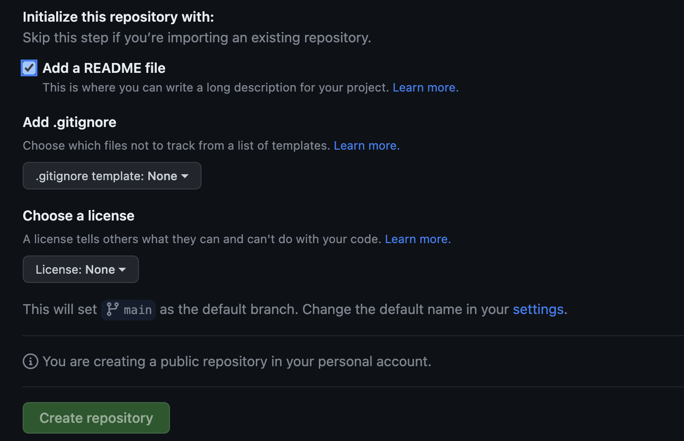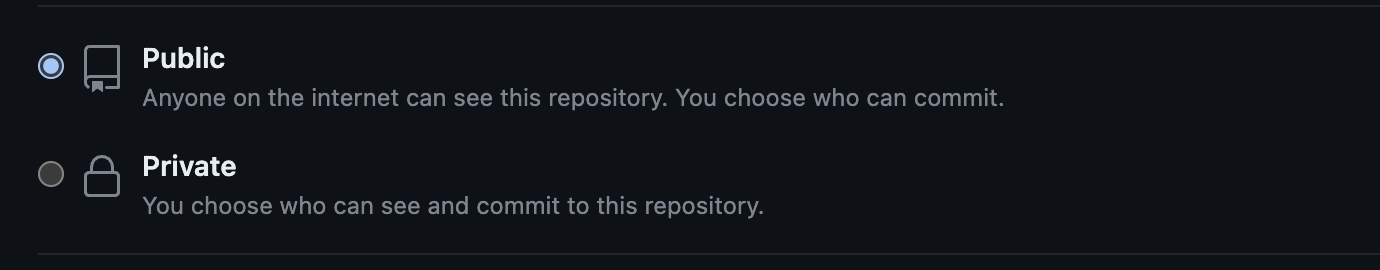 Public vs private: con cada repositorio tendremos la opción de hacer el repositorio