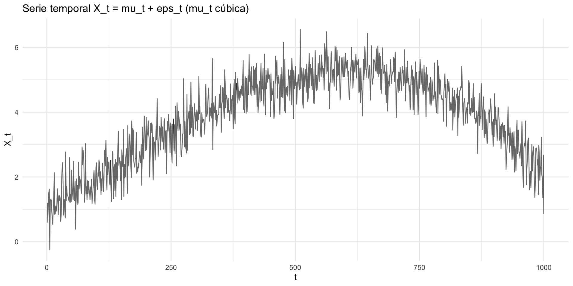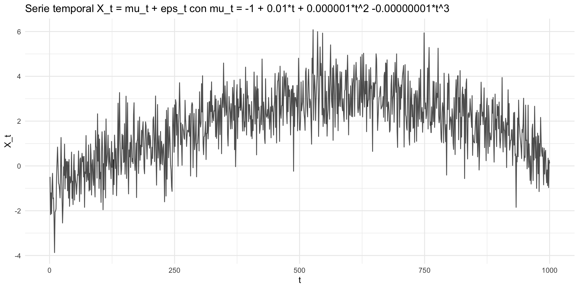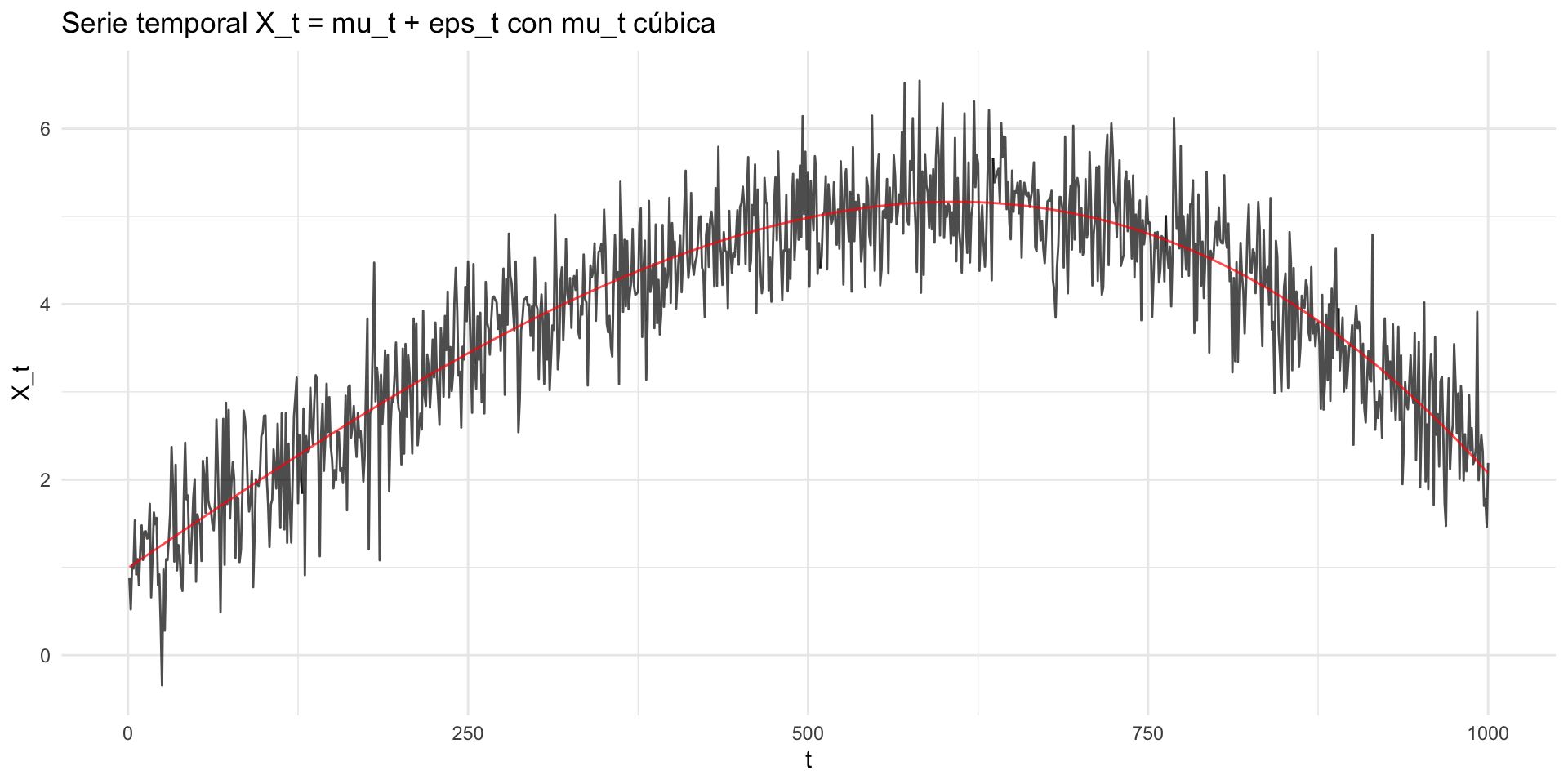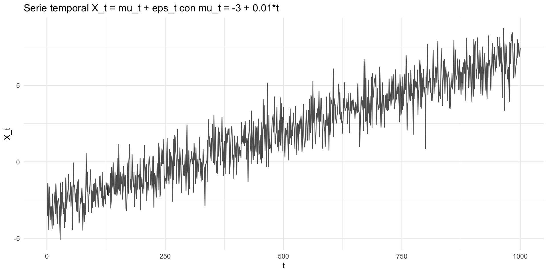 Intervenciones: incluso podría suceder que la serie tuviese un corte o salto en su comportamiento. Por ejemplo, imagina que de repente el aparato de medición empieza a medir +25 grados de la temperatura real.