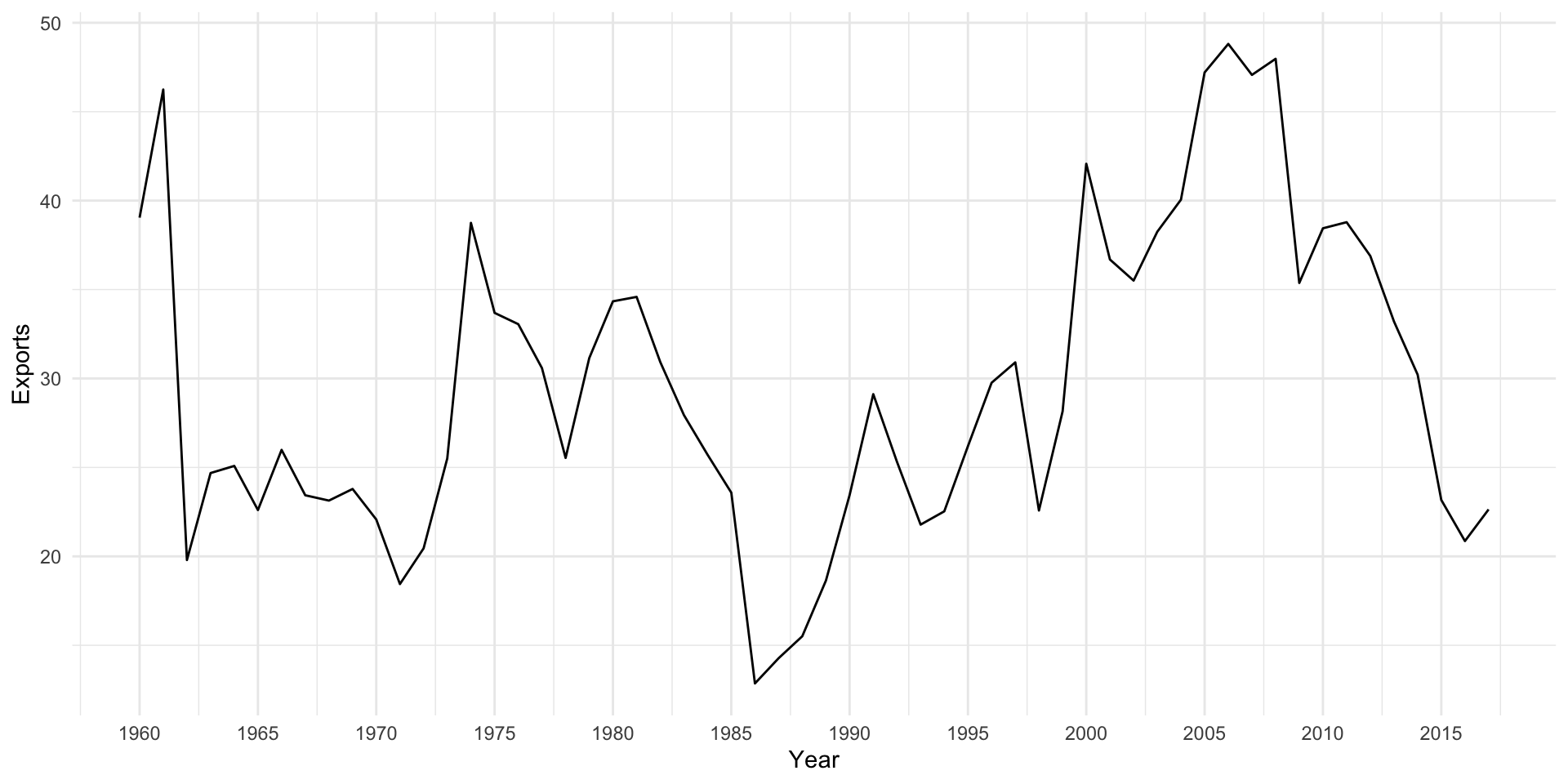 En esta asignatura será fundamental un concepto: estacionariedad. Diremos que una serie es estacionaria si oscila de manera estable con una media y varianza constante.