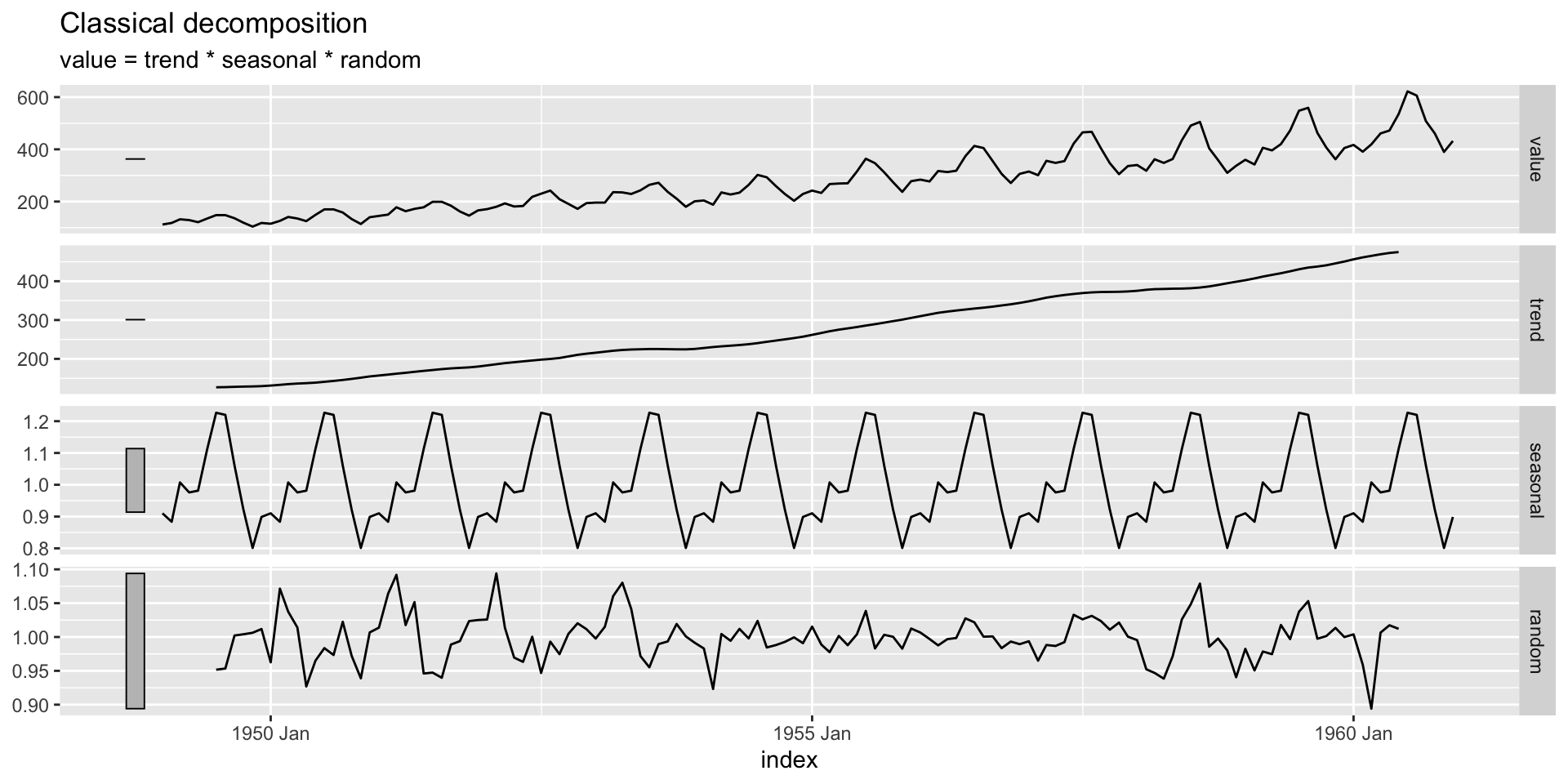 \[X_t - \phi_1 X_{t-1} = (1 - \phi_1 B) X_t = \Phi_1(B)X_t = \varepsilon_t\] En un contexto puramente estacional, el concepto «dato anterior» no es el dato que corresponde al instante previo \(t-1\) sino al dato que corresponde al periodo estacional previo. Si tenemos una estacionalidad de periodo \(s\) entonces retroceder estacionalmente 1 periodo es \(X_{t-s}\).
