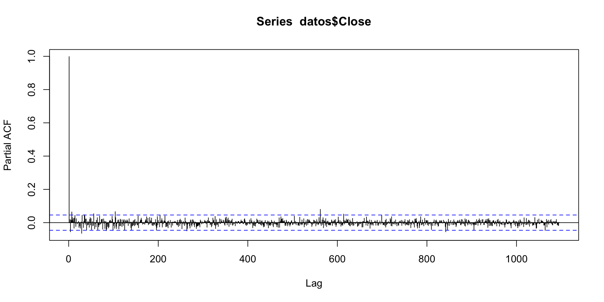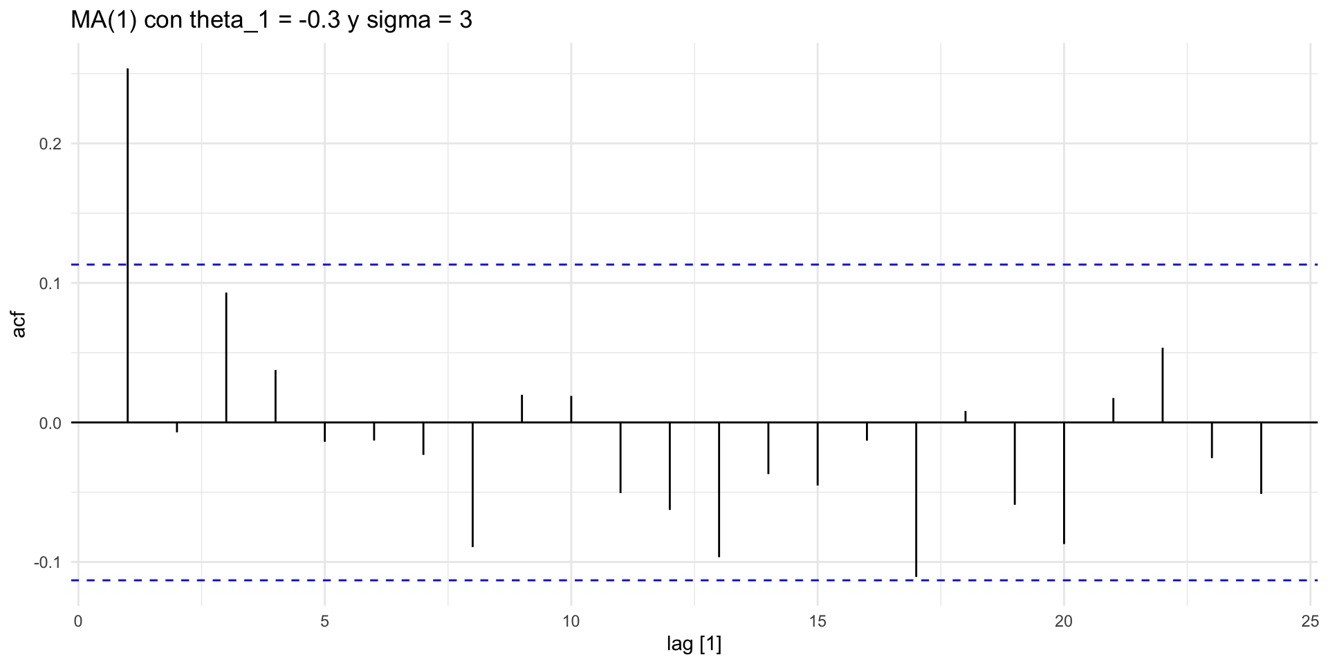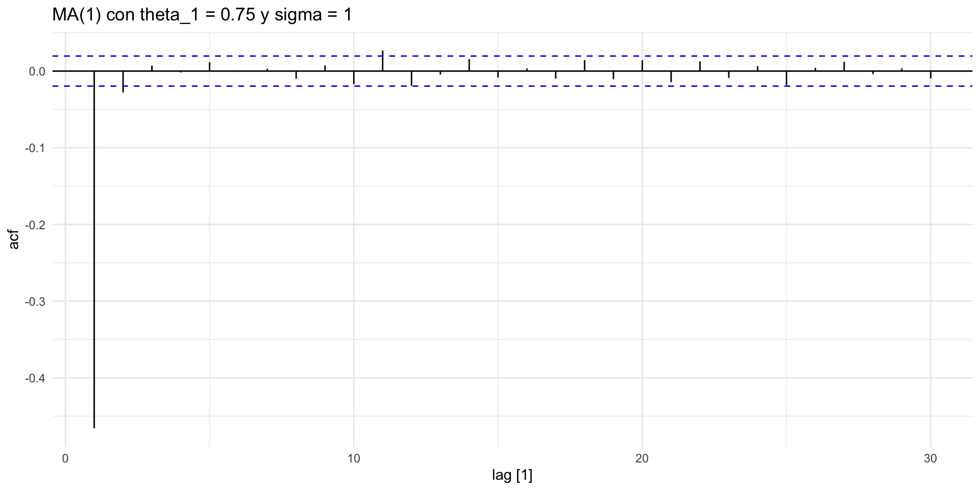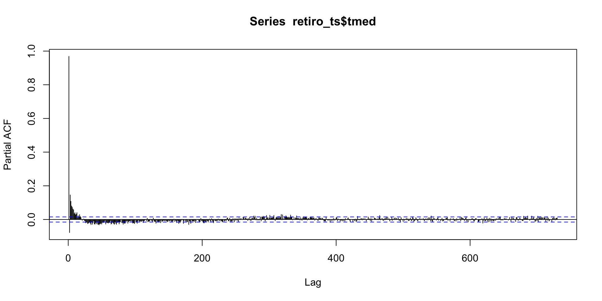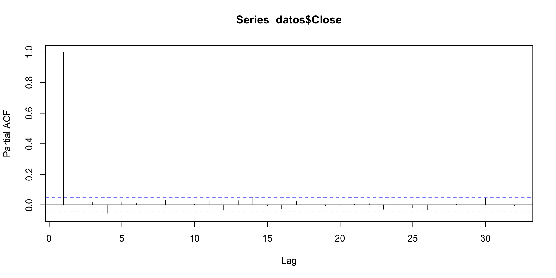 PACF: en el caso de un AR(1) las correlaciones a partir de la primera caían a 0 drásticamente; en el caso de un \(AR(1)_s\)decaen drásticamente a 0 pero a partir de la correlación \(\rho_s\).