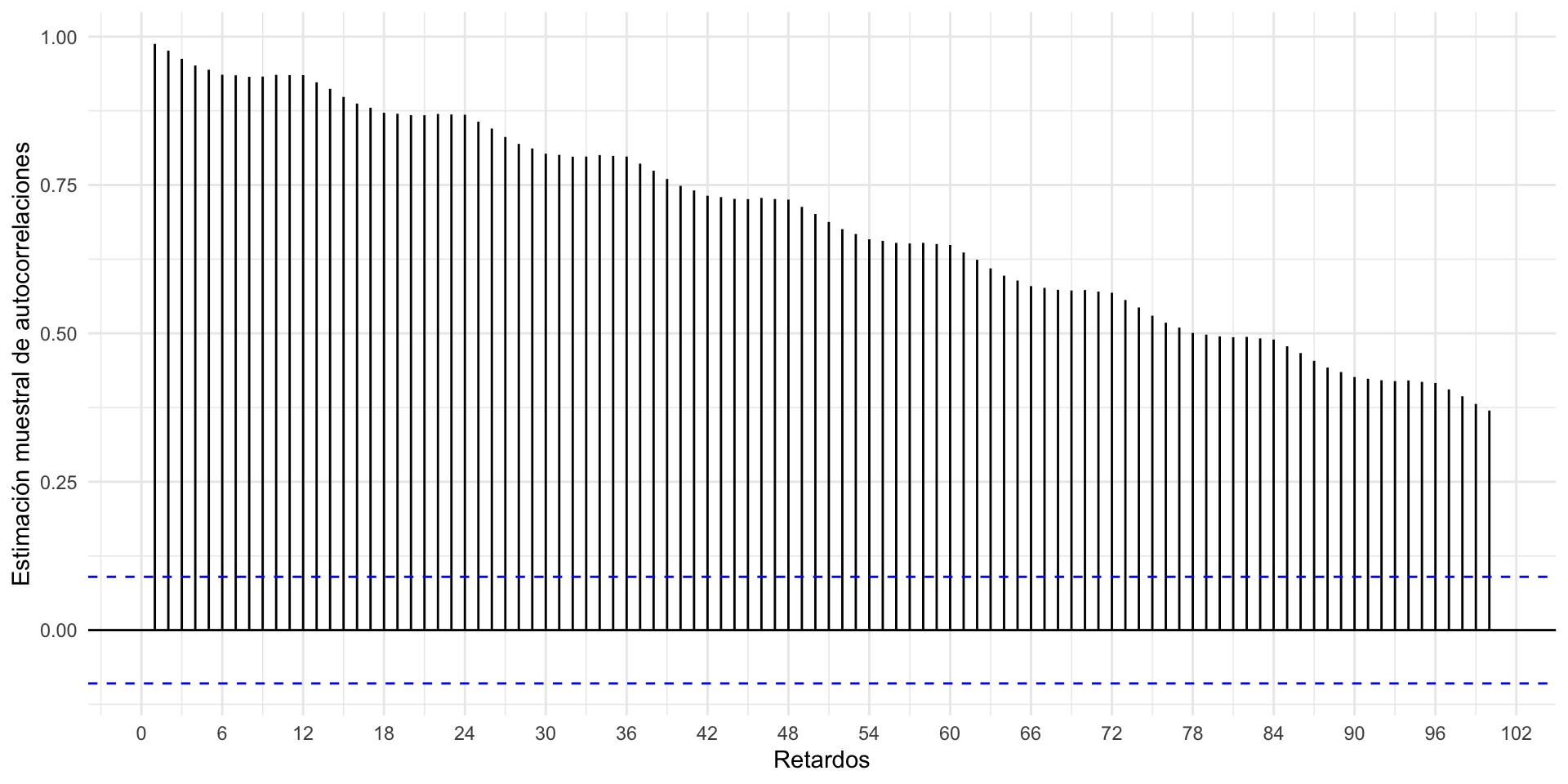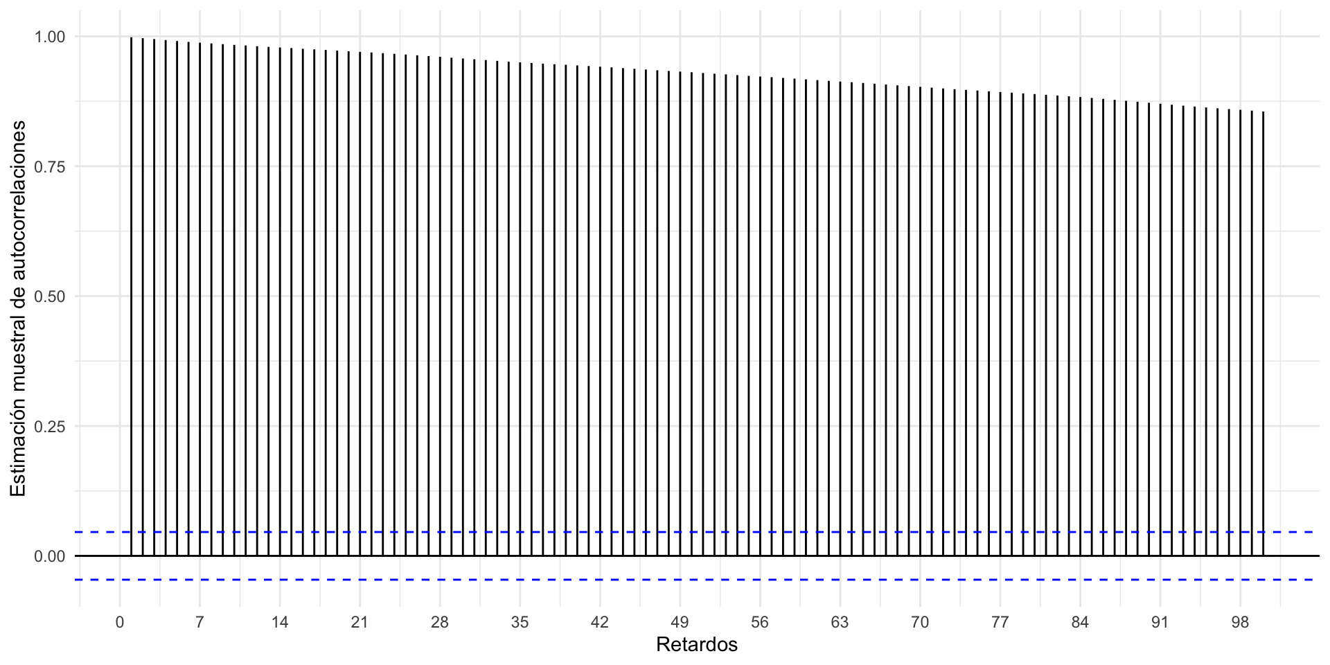 Si nuestro proceso no fuera estacionario en media deberíamos evaluar que tendencia tiene la propia serie.