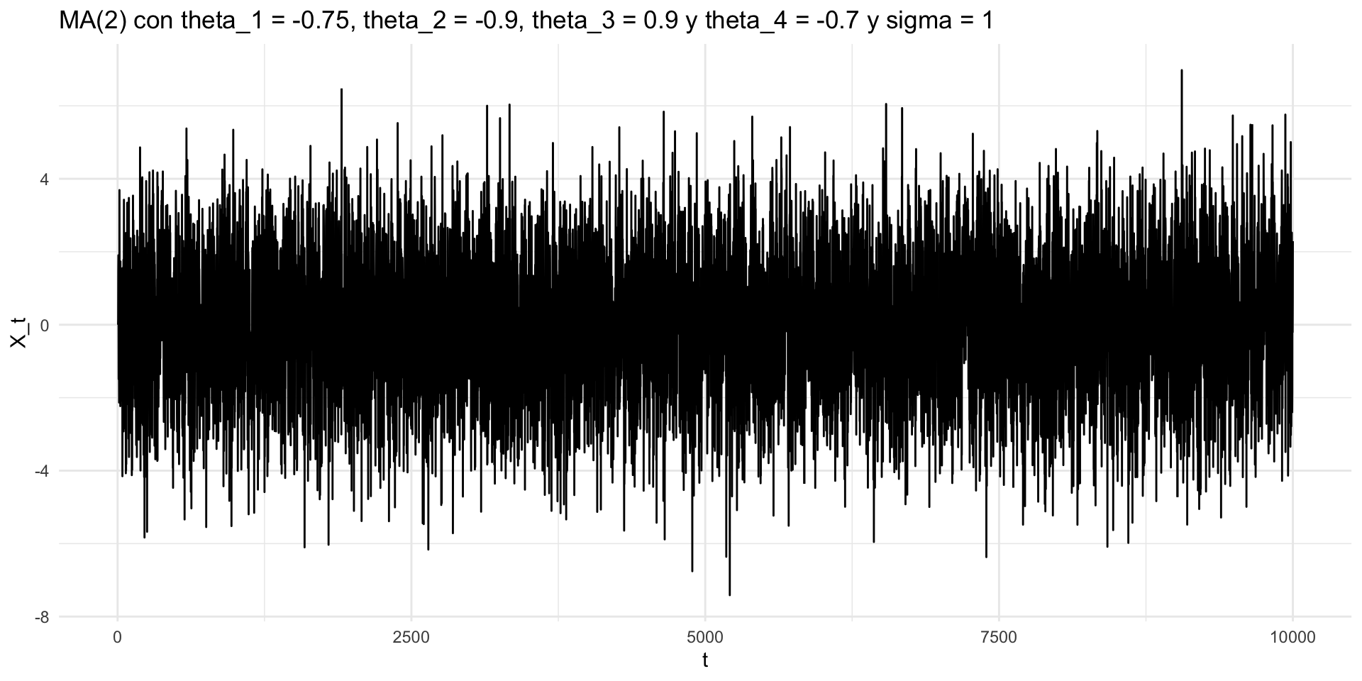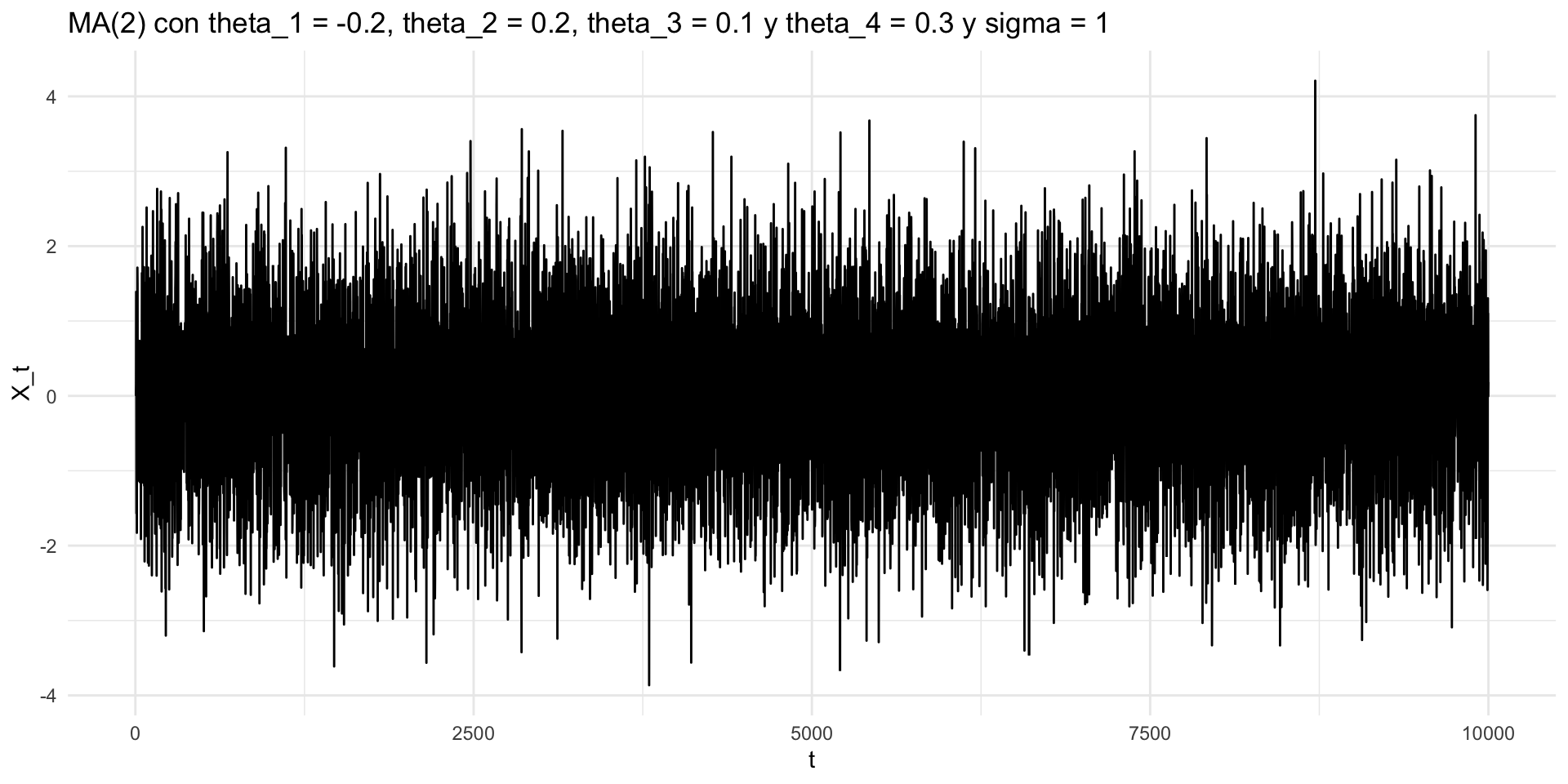 Vamos ahora a simular un \(ARMA(2, 3)_{s = 12}\) con \(\widetilde{\phi}_1 = 0.5\) y \(\widetilde{\phi}_2 = -0.8\), y \(\widetilde{\theta}_1 = -0.2\)\(\widetilde{\theta}_2 = 0.5\) y \(\widetilde{\theta}_3 = -0.6\)