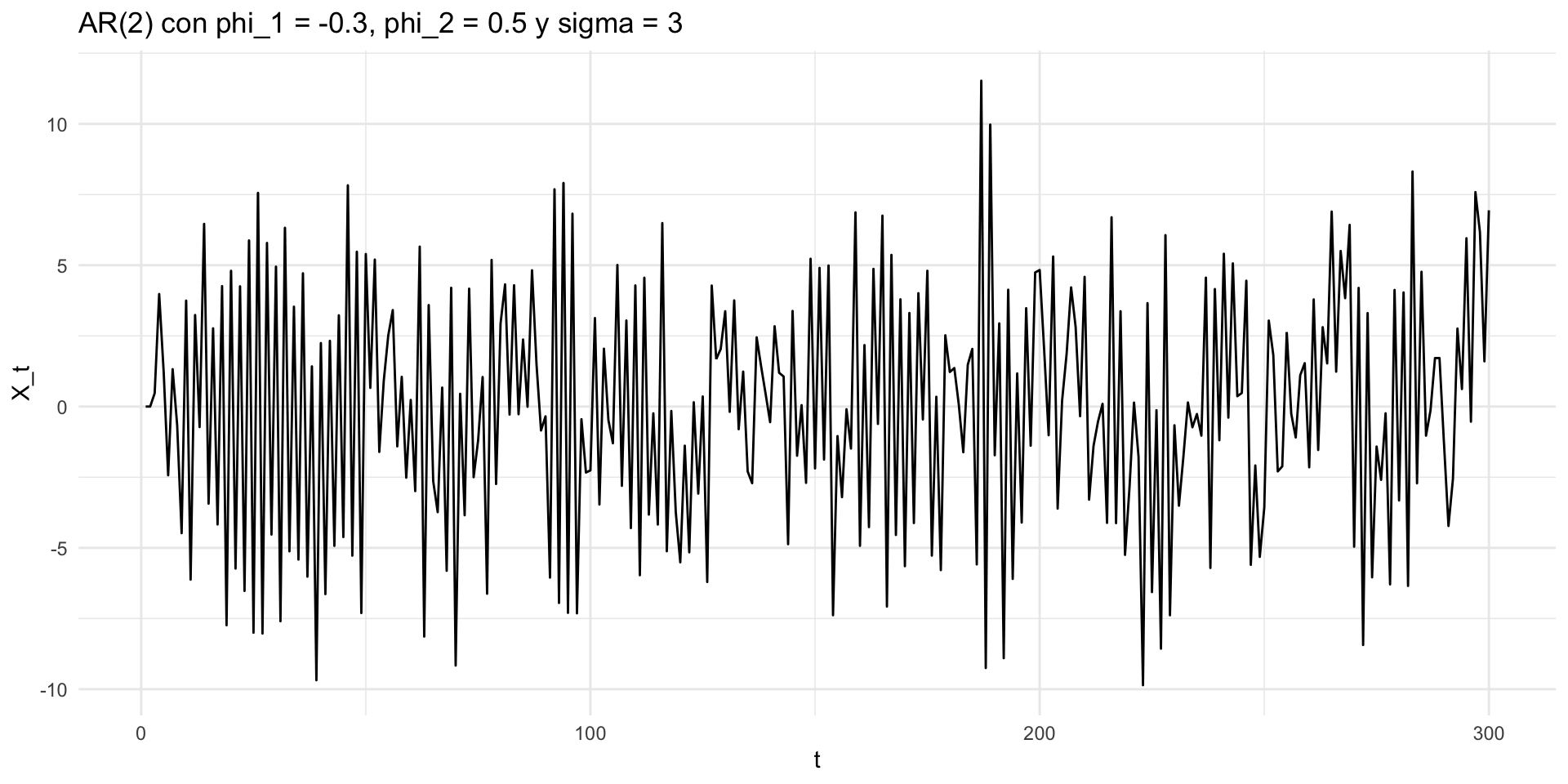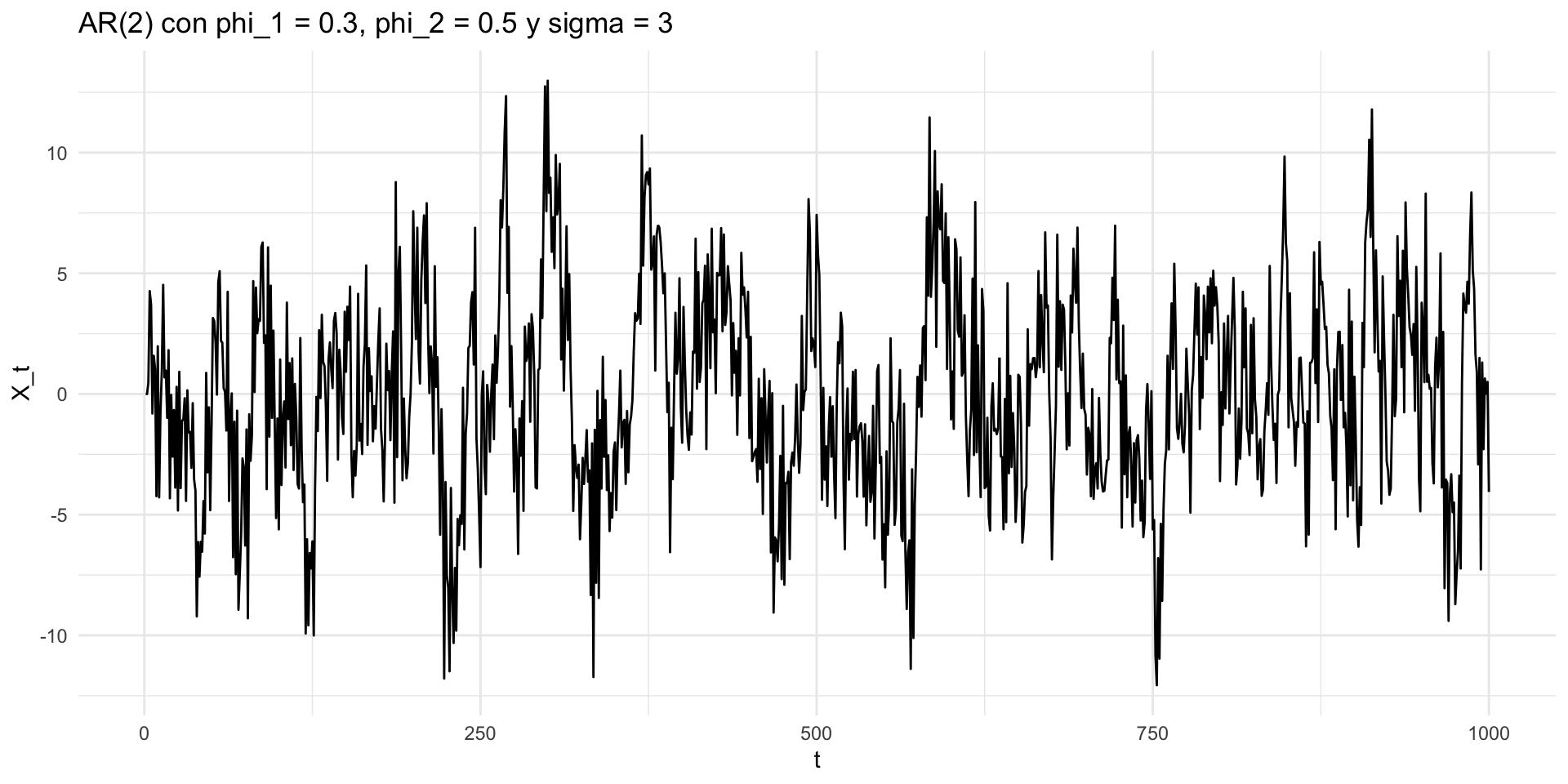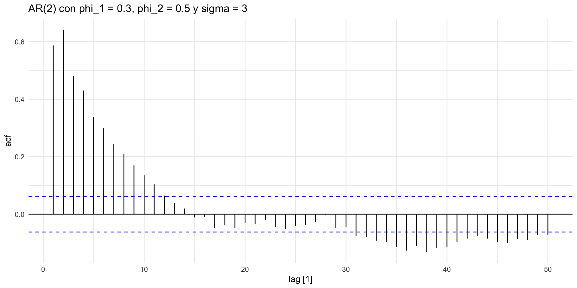 Vamos ahora a simular un \(AR(2)_{s = 12}\) con \(\widetilde{\phi}_1 = 0.5\) y \(\widetilde{\phi}_2 = -0.8\).