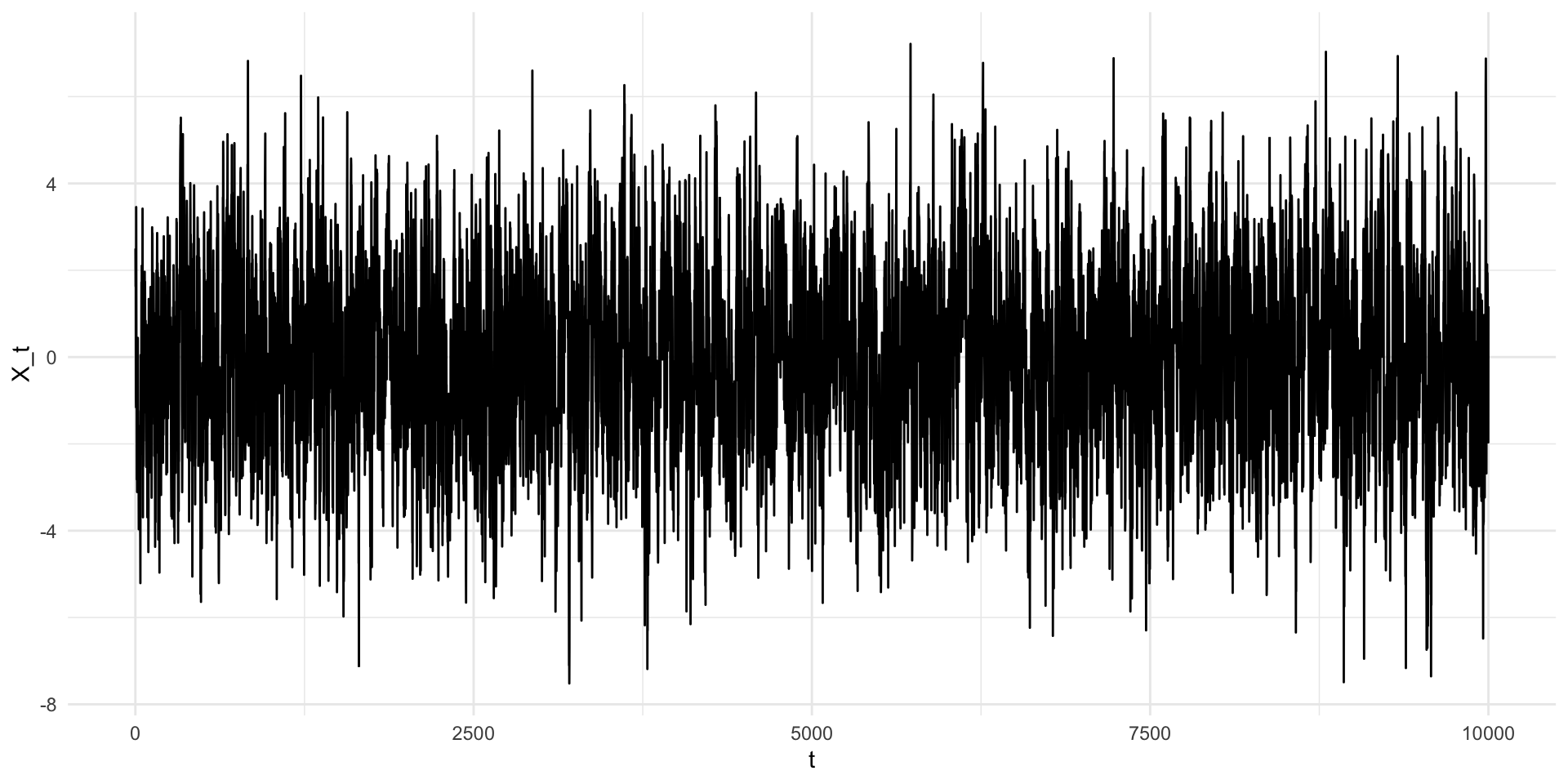 # install.packages("astsa")library(astsa)library(tsibble)library(tibble)n <-10000SAR_1 <-tibble("t"=1:n,"X_t"=sarima.sim(n = n, sar =0.8, S =12, sd =1.5)) |>as_tsibble(index = t)